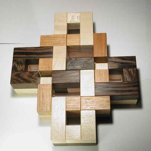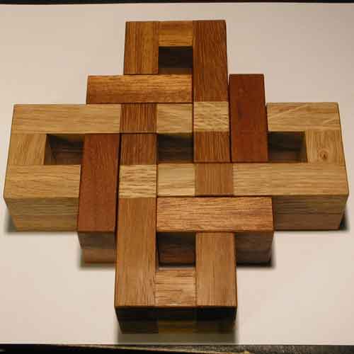 This is my prototype You can see how much difference it makes when the puzzle is made with not very contrasting woods.This puzzle particularly needs 3 colors(like the picture above)so you can separate the virtual knots. |
